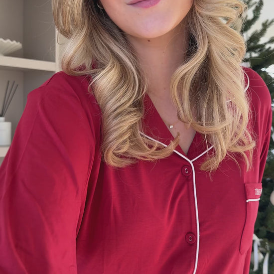 The Ultimate Holiday Set pairs our cozy, forest-inspired candle with a luxurious bordeaux-red holiday pajama set. Wrapped in warm, uplifting scents and soft seasonal comfort, it’s the perfect gift for slowing down, unwinding, and savoring the magic of the holidays.